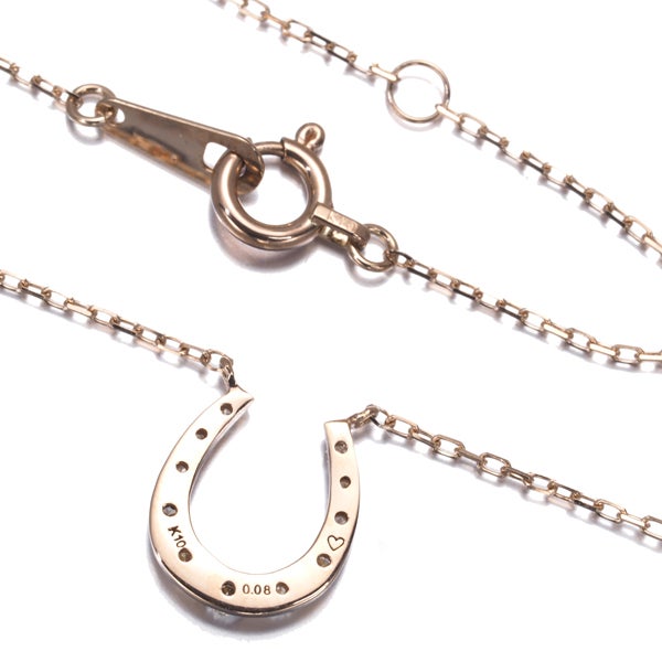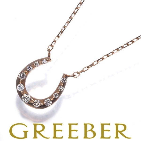 ダイヤ ダイヤモンド 0.08ct ホースシュー 艶消し ネックレス K10PG【中古】GENJ