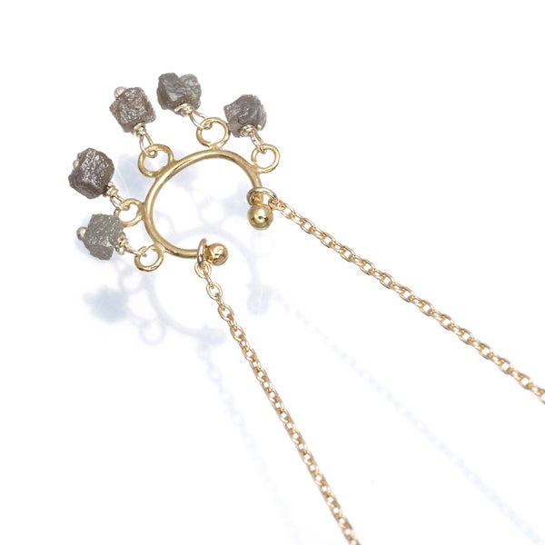 グレーカラーの原石ダイヤモンドが艶やかなゴールドと共に煌めくネックレスです。