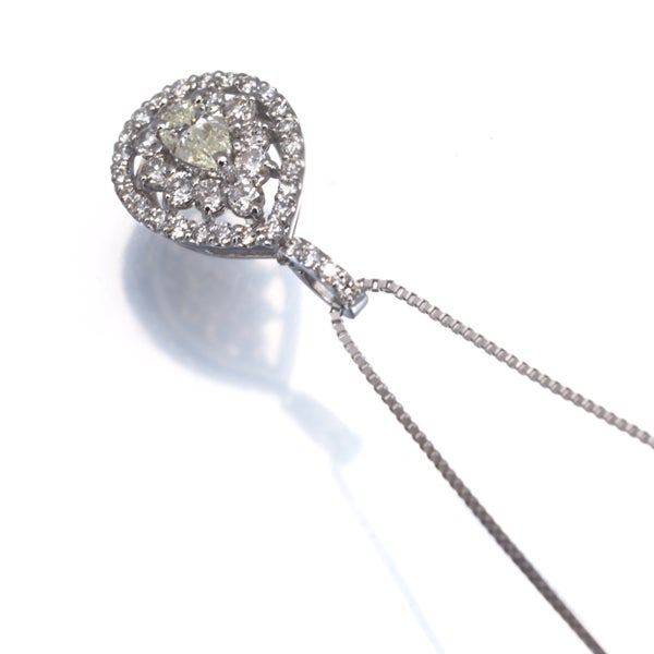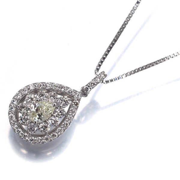 クリア&イエロー ダイヤ ダイヤモンド 0.50ct ペアシェイプ ティアドロップ ネックレス Pt900/Pt850 【中古】GENJ