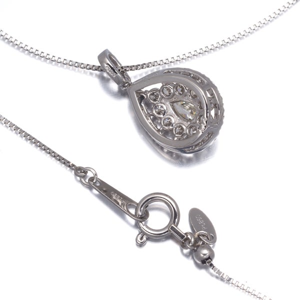 瑞々しく繊細な煌めき美しいメレダイヤの煌びやかな雰囲気が印象的なティアドロップモチーフの中央へイエローを纏いVSクラスアップのクラリティと思われる上質ペアシェイプカットの1石を添えたプラチナネックレスです。