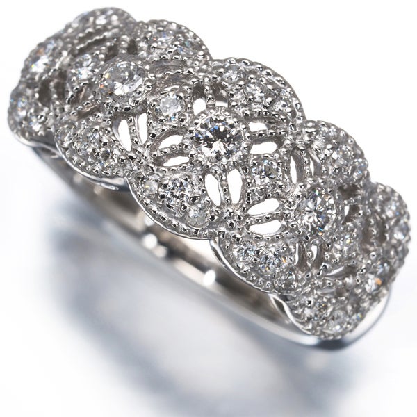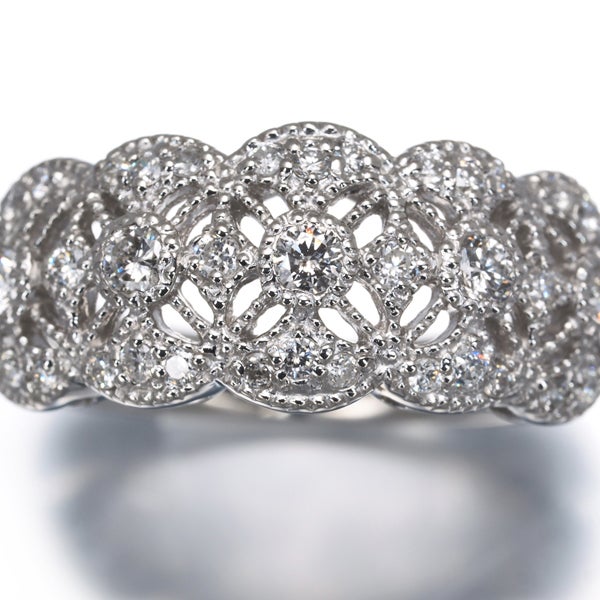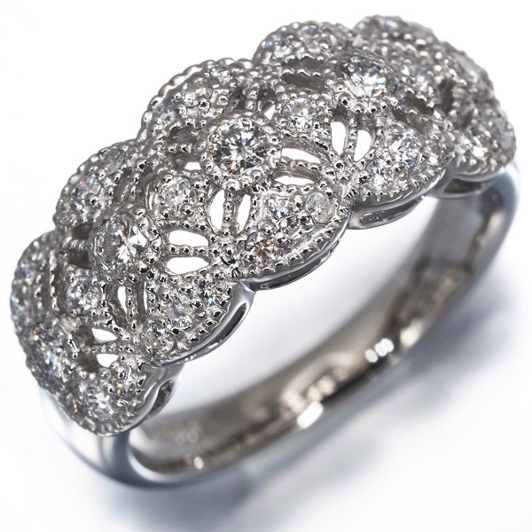 繊細なミルグレイン細工と透かしをあしらった美しいプラチナジュエリー。共に輝く上質ダイヤモンドと共にエレガンスな雰囲気を演出してくれるリングですよ。