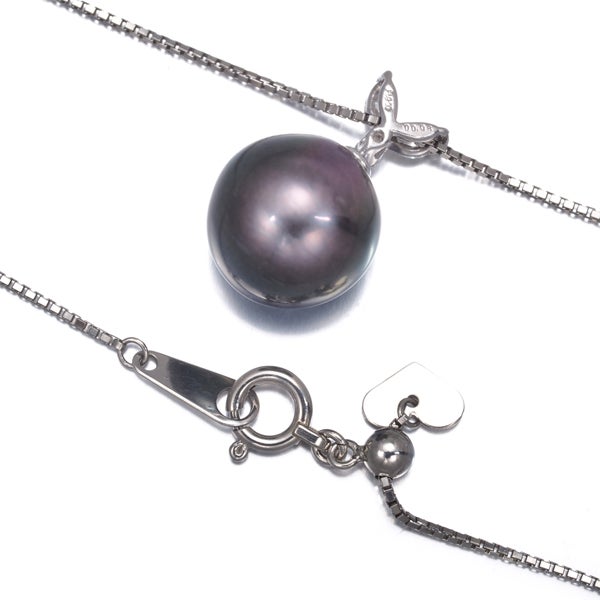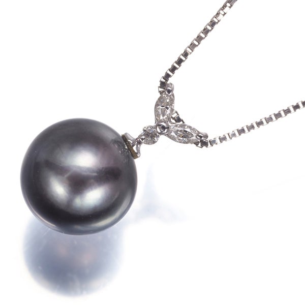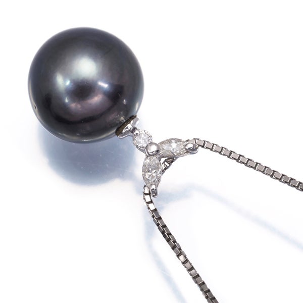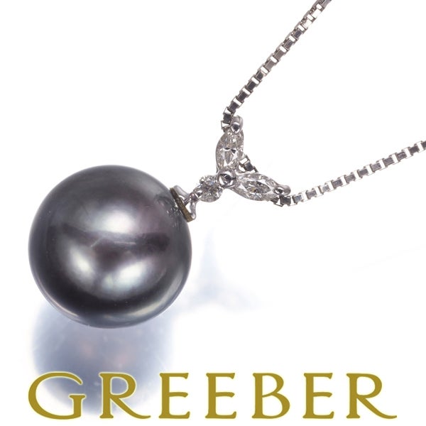 【ポイントアップ対象商品】ブラック パール 真珠 10.1mm ダイヤ ダイヤモンド 0.08ct ネックレス Pt900/Pt850 【中古】GENJ