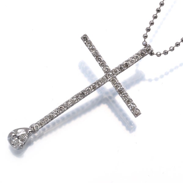 繊細に飾られたメレダイヤの煌めきにペアシェイプの1石が瑞々しく揺れ輝く素敵なクロスモチーフジュエリー。上品な輝きが胸元を美しく飾ってくれますよ。