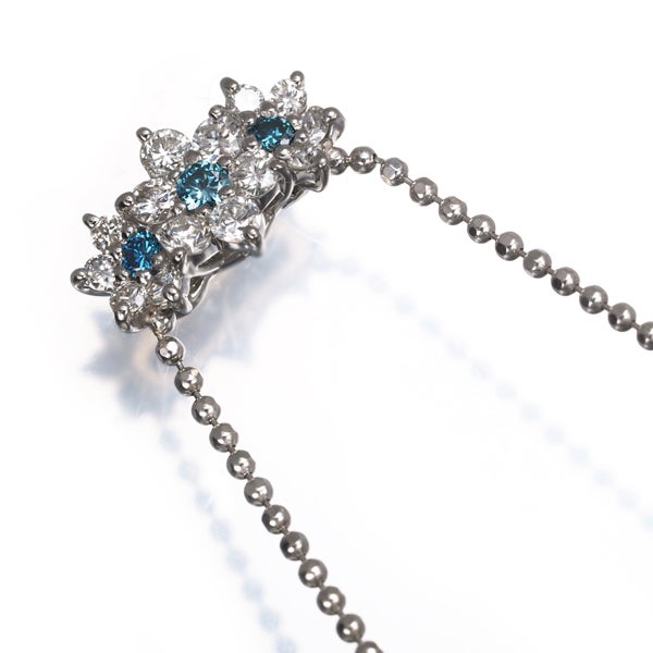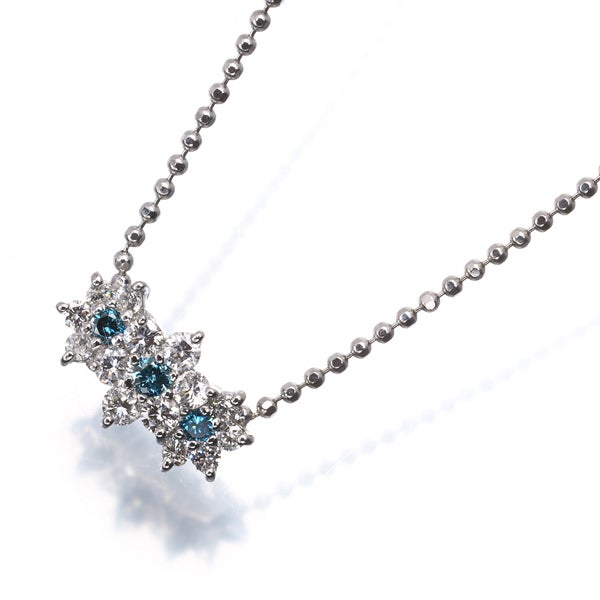 【ポイントアップ対象商品】ブルー&クリア ダイヤ ダイヤモンド 0.11ct/0.385ct フラワー ネックレス Pt900/Pt850 【中古】GENJ