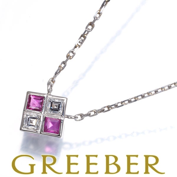 ルビー 0.31ct ダイヤ ダイヤモンド 0.19ct スクエア ネックレス Pt900 ソーティング【中古】GENJ