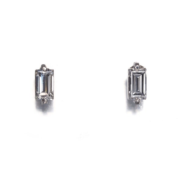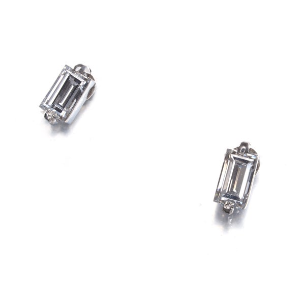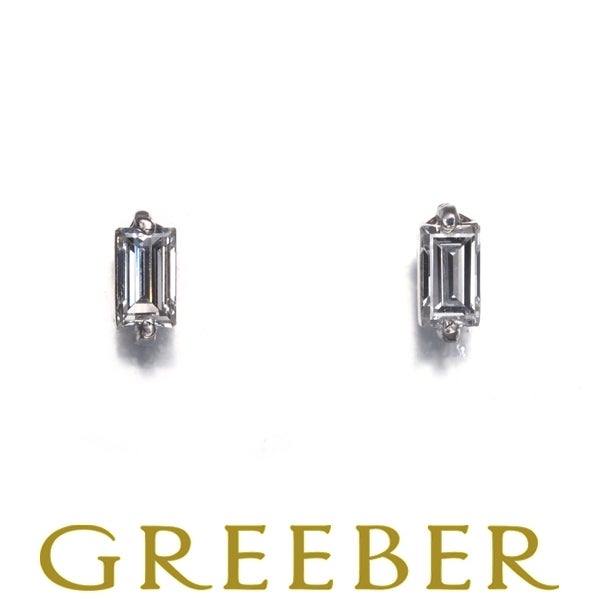 色味をほとんど感じないVSクラスと思われる上質なバゲットカットのダイヤモンドをシンプルに留めたピアスジュエリーです。