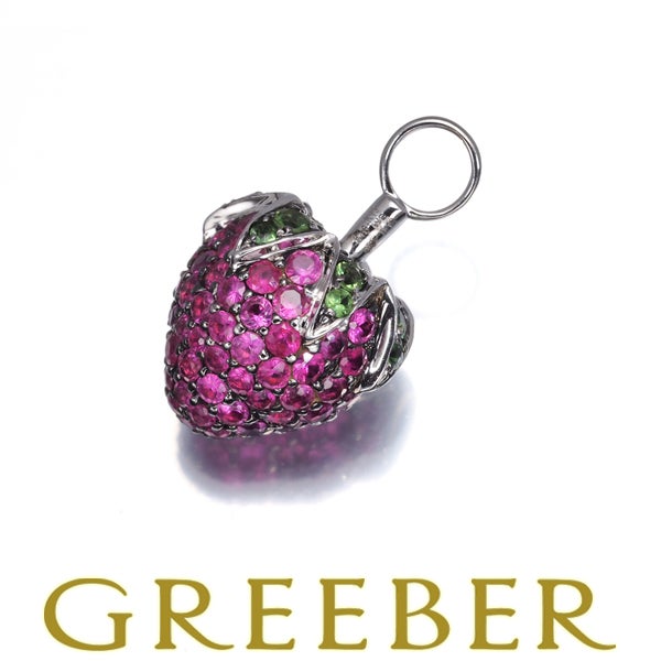 ルビー 0.37ct ツァボライト イチゴ ペンダントトップ K18WG/ブラックコーティング ソ【中古】GENJ