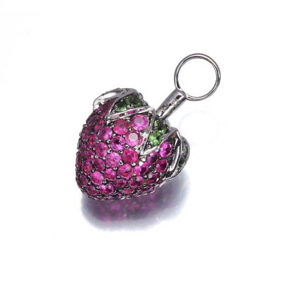 レディッシュピンクのルビーとツァボライトの鮮やかな輝きでふっくらとしたストロベリーをモチーフにした愛らしいペンダントトップですよ。
