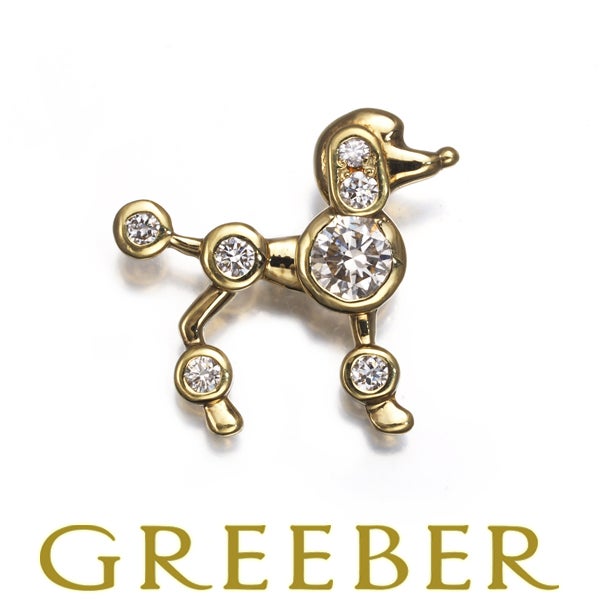 【ポイントアップ対象商品】 ダイヤ ダイヤモンド 0.25ct ピン プードル 犬 イヌ アニマル ブローチ K18YG 【中古】GENJ