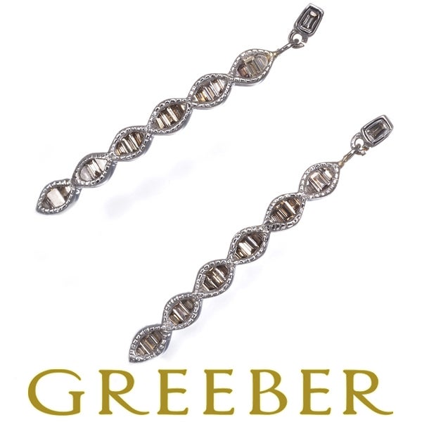 バゲットカットのシャープな煌めきが耳元に揺れる上品なピアス。ブラウンダイヤモンドならではのシックなニュアンスをお楽しみください。