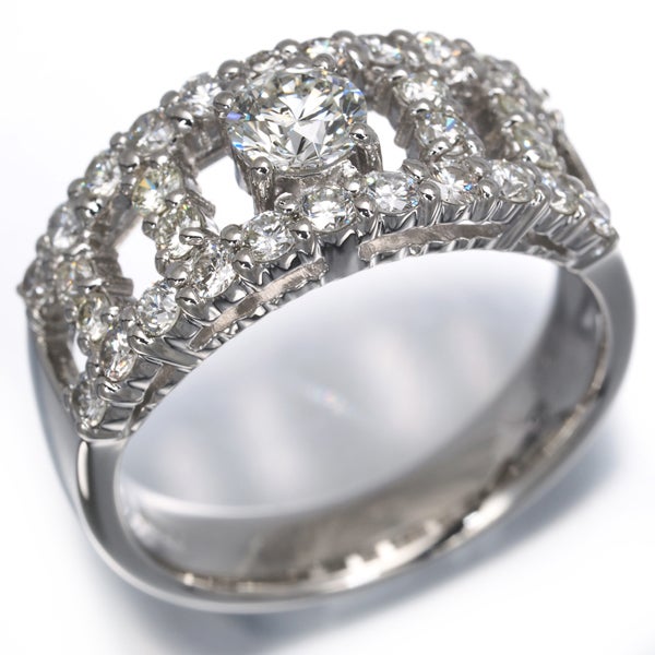 上質な透明感を持つダイヤモンドで煌びやかな透かしデザインをあしらったリング。メインには0.375ctもの大粒を飾った1石はニアカラーレスかつ多少の内包物は確認できますが上質な透明感を持つものがセレクトされておりますよ。