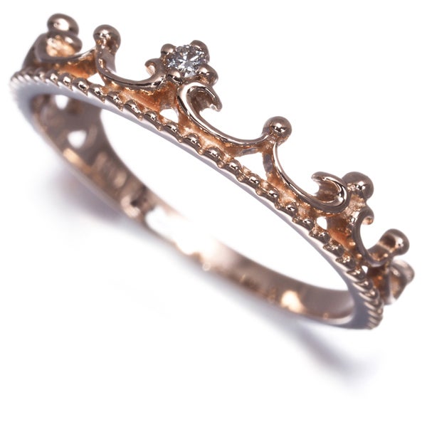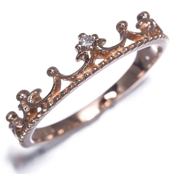 どこか愛らしさが感じられるティアラモチーフに一粒のダイヤモンドがキラリと瞬ピンキーリング。いつもの装いを素敵に引き立ててくれる一品をお楽しみください。