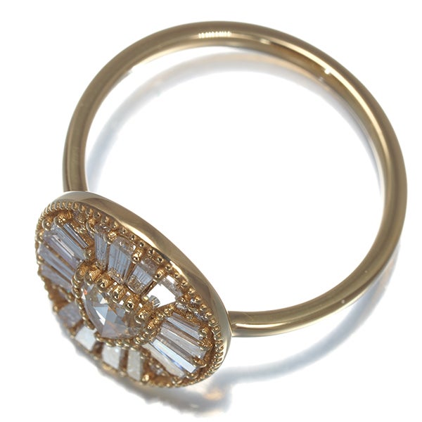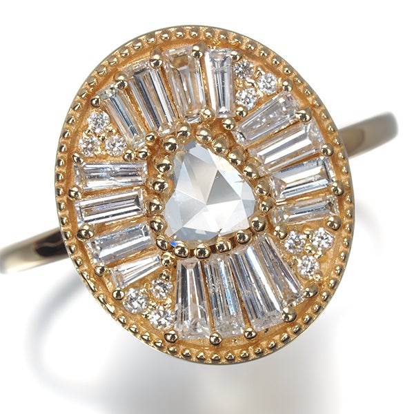 上質ローズカットらではの上品な輝きをメインに眩い2種カットの煌めきで包み込んだダイヤモンドリング。繊細なミルグレイン細工とオーバルの優美なフォルムも美しい一品。装いのお手元をエレガントに輝かせてくれますよ。