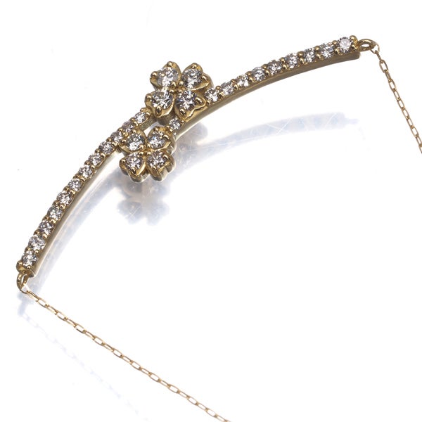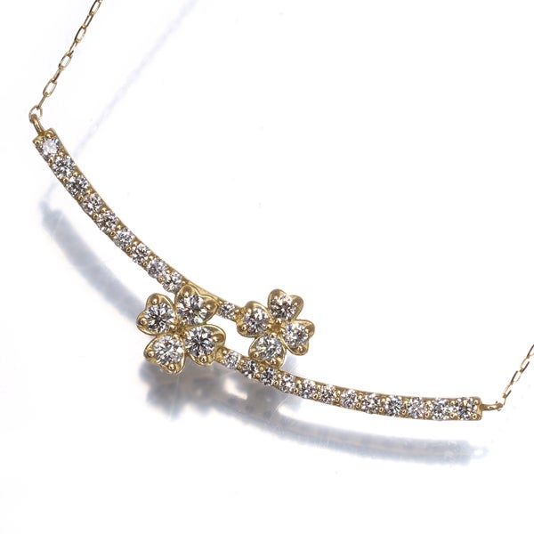 緩やかなカーブを描くゴールドバーへ上質な透明感を持つブラウンダイヤモンドの輝きを贅沢に並べたネックレス。メインにはフラワーセッティングされた美しいアクセントを演出しております。