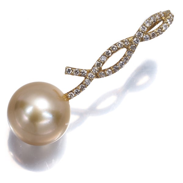 ゴールデン パール 真珠 11.3mm ダイヤ ダイヤモンド 0.24ct ペンダントトップ K18YG ソーティング【中古】GENJ