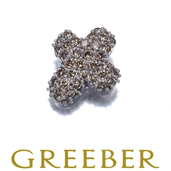 ブラウンダイヤ ダイヤモンド 0.60ct クロス パヴェ ペンダントトップ K18WG 【中古】GENJ
