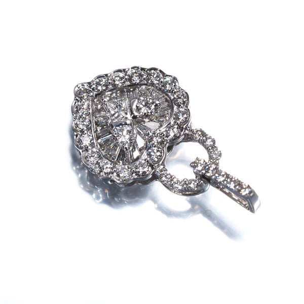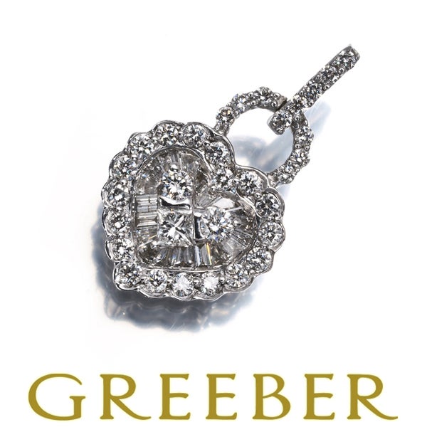 【ポイントアップ対象商品】 ダイヤ ダイヤモンド 0.75ct ハート プリンセス テーパー 3種カット ペンダントトップ K18WG 【中古】GENJ