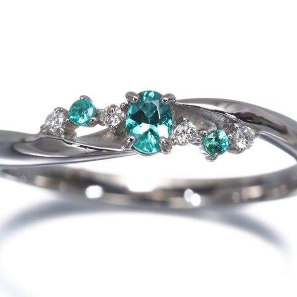 艶やかあんプラチナアーム煌めく上品なデザインへメレダイヤと共に希少宝石パライバトルマリンの輝きを飾ったリング。メインの1石は特有の内包物が実に少ない上質な透明感と鮮やかなネオンの輝きが美しい1石を厳選しております。