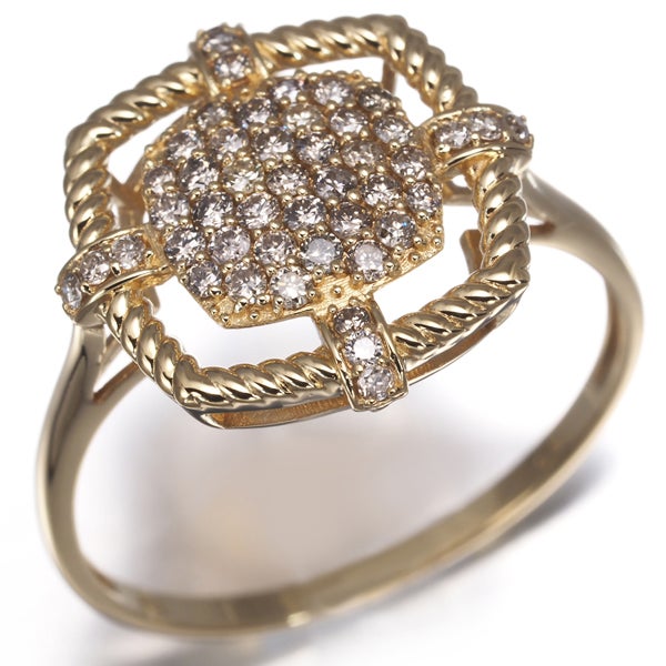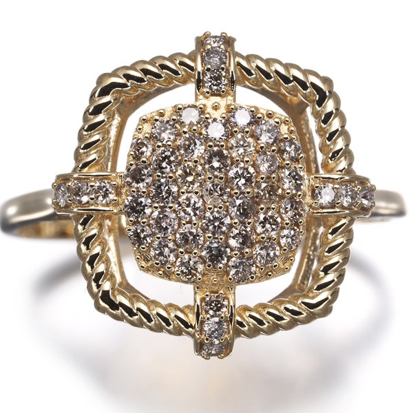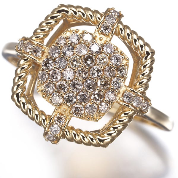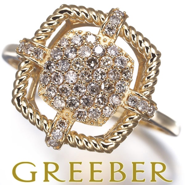 ライトブラウン ダイヤ ダイヤモンド 0.3ct パヴェ リング K18YG 【中古】GENJ