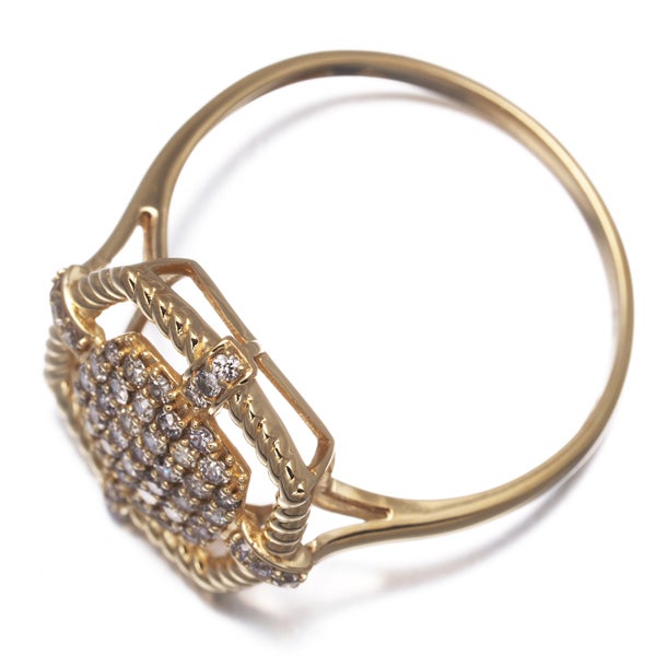 仄かなお色味を纏った眩い輝きをパヴェセッティングに飾った素敵なダイヤモンドリング。オープンワークで描かれたジオメトリックなシルエットが お手元にエレガントなニュアンスを飾ってくれます。