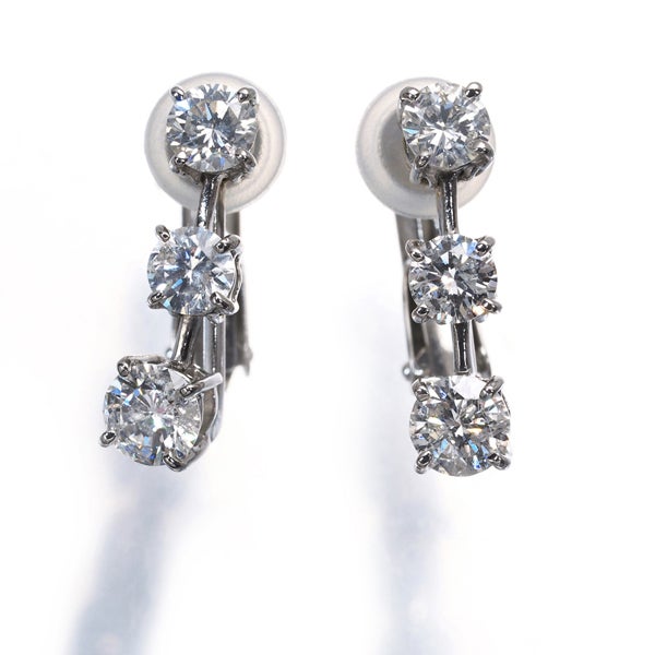 多少の内包物も耳元では感じられないダイヤモンドの輝きが 耳元に揺れる上品なイヤリング。1石1石に存在感を持たせ、眩い煌めきが 装いをエレガントに演出してくれます。