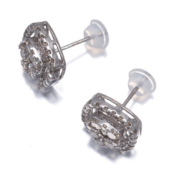 ライトブラウン ダイヤ ダイヤモンド 0.60ct/0.60ct スクエア パヴェ ピアス K18WG 【中古】GENJ