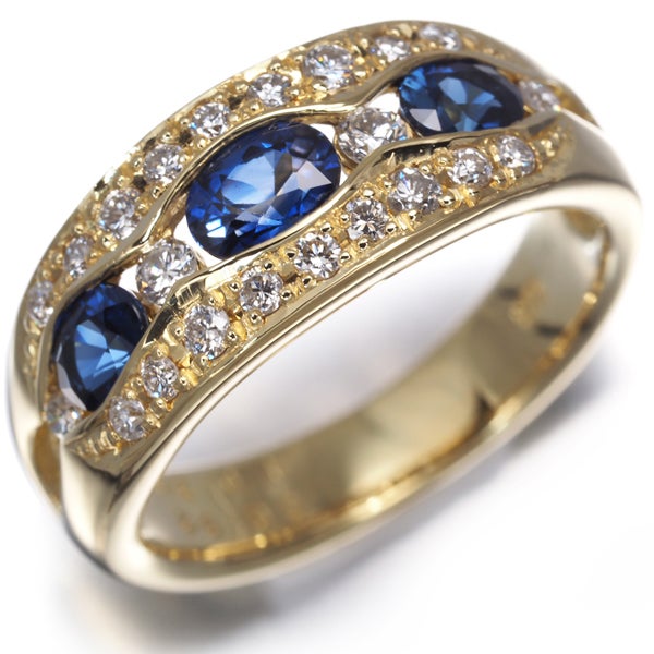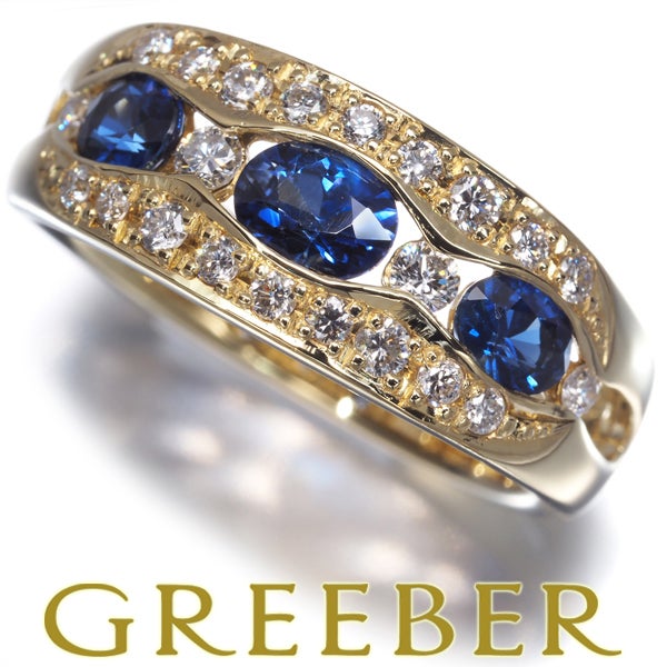 サファイア 0.82ct ダイヤ ダイヤモンド 0.30ct オーバルカット リング K18YG 【中古】GENJ