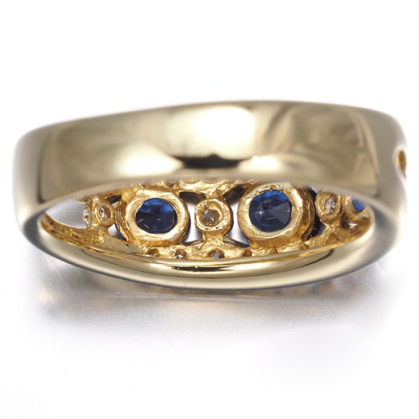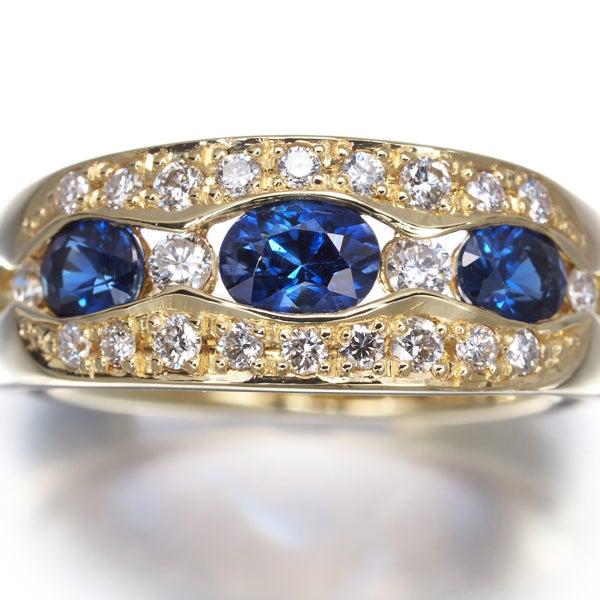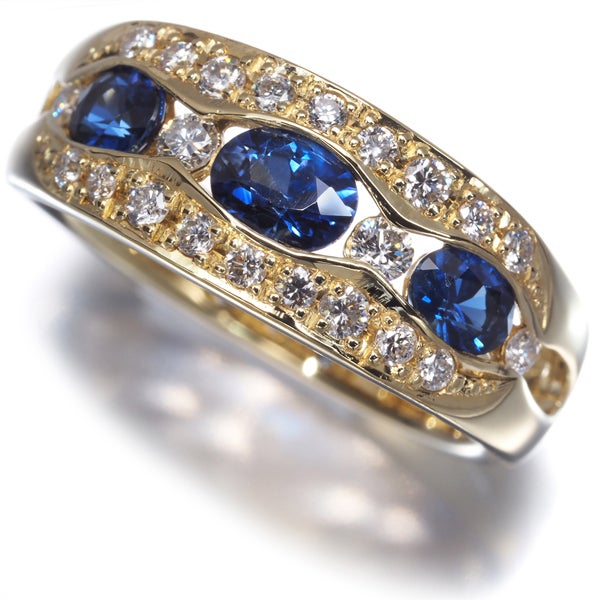 奥からも湧き上がるような鮮やかな煌めきを魅せる色美しいサファイアを 内包物もほぼ見られない上質ダイヤモンドの瑞々しさがいっそう引き立てた 実に美しいお品。ウェーブを描くゴールドの光沢とも優雅なコントラストを織り成し お手元を贅沢に飾ってくれます。