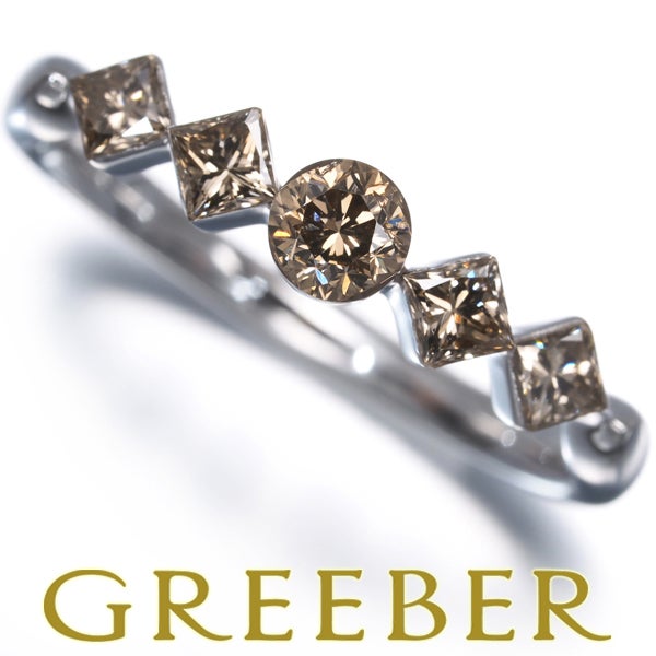 【スプリングキャンペーン!11%対象商品】ブラウン ダイヤ ダイヤモンド 0.60ct プリンセス 2種カット リング K18WG 【中古】GENJ