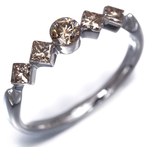 ラウンドの1石をメインにプリンセスカットの上品な輝きを飾ったダイヤモンドリング。ブラウンダイヤならではのシックなニュアンスに 僅かな内包物しか見られない透明感溢れる煌めきをお楽しみいただける一品ですよ。