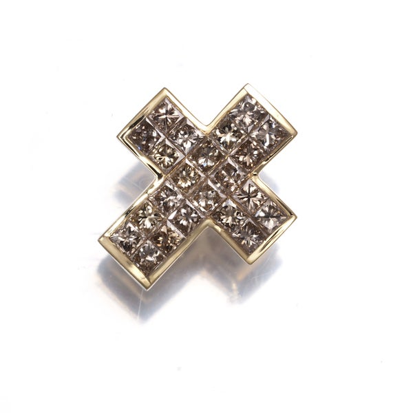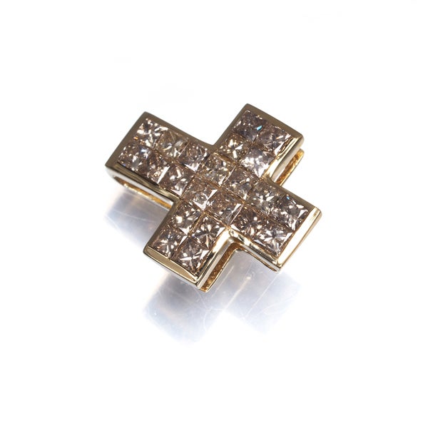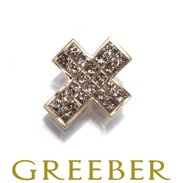 【スプリングキャンペーン!11%対象商品】ブラウン ダイヤ ダイヤモンド クロス ミステリーセッティング ペンダントトップ K18YG 【中古】GENJ