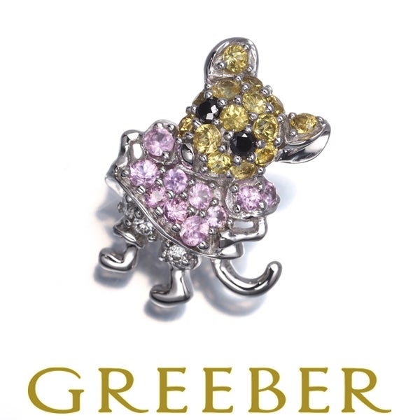 【スプリングキャンペーン!11%対象商品】イエロー&ピンク サファイア ダイヤ ダイヤモンド ネズミ アニマル ペンダントトップ K18WG 【中古】GENJ