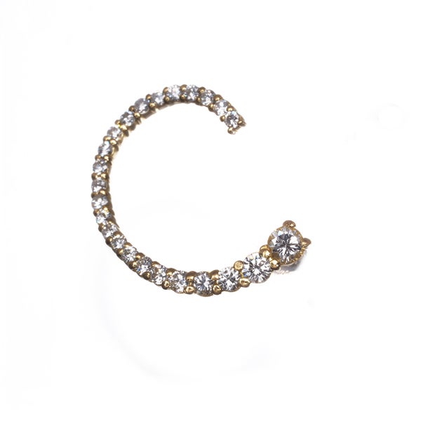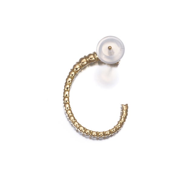 Cラインのモダンなデザインに煌めくダイヤモンドの瑞々しい輝きが いつもの装いを引き立ててくれる素敵なピアスですよ。