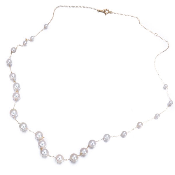 パール 真珠 3.5-7.0mm ステーション ネックレス K18YG 【中古】GENJ
