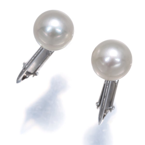 ホワイト系のすっきりとしたお色味からエクボ等も見られない上品なテリ艶を魅せるアコヤ真珠の輝きが 装いを美しく飾ってくれるイヤリングですよ。