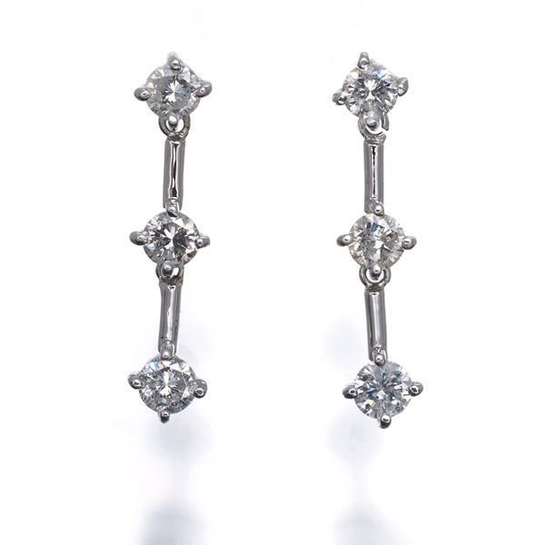 ダイヤ ダイヤモンド 0.50ct/0.50ct 3P 揺れる ピアス K18WG 【中古】GENJ