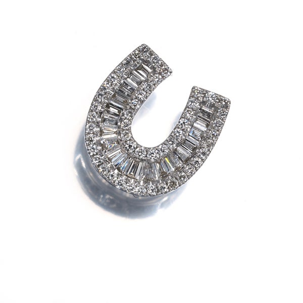 上質の煌めきを放つテーパー&ラウンドメレの瑞々しさが胸元にキラキラと瞬くダイヤモンドジュエリー。ラッキーモチーフのホースシューが 装いを上品に飾ってくれますよ。