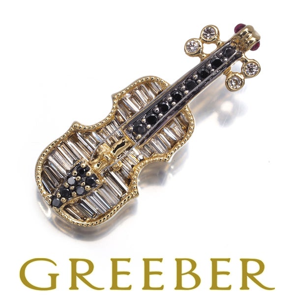 【スプリングキャンペーン!11%対象商品】ブラック&クリア ダイヤ ダイヤモンド 0.53ct ルビー バイオリン テーパーカット ペンダントトップ K18YG 【中古】GENJ