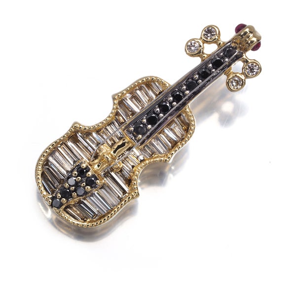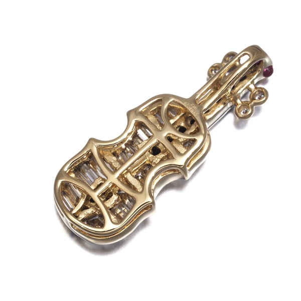 細やかな彫金細工と2カラーダイヤモンドの煌びやかな輝きでヴァイオリンをモチーフに描いた素敵なペンダントトップ。装いを上品に飾る美しいアクセントとしてお楽しみください。