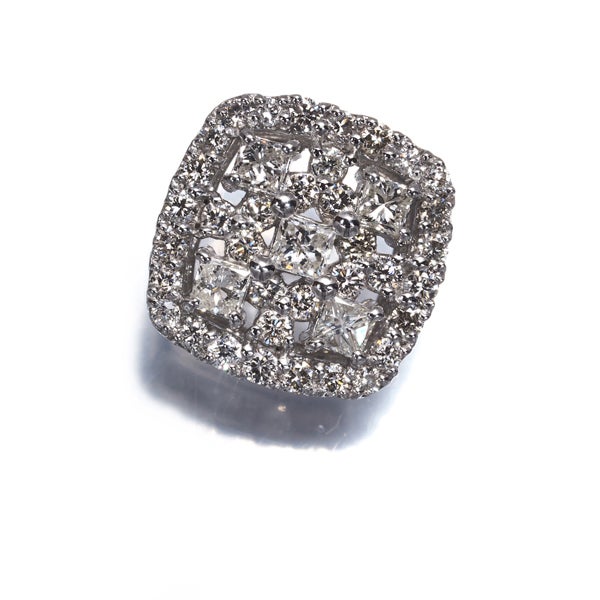 僅かに見られる内包物とお色味も胸元では感じさせないプリンセスカットダイヤの眩い輝きをラウンドメレの煌めきで包み込んだ上品なペンダントトップ。エレガントなニュアンスとともに 胸元に美しく瞬く素敵な一品ですよ。