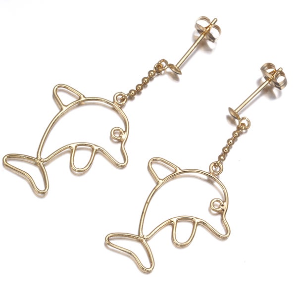 ゴールドの上品な輝きで、愛らしいイルカがモチーフのピアスです。