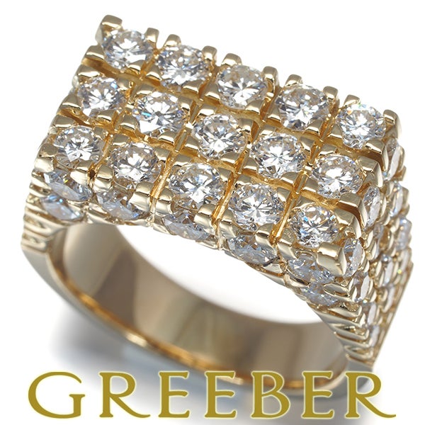【スプリングキャンペーン!11%対象商品】 ダイヤ ダイヤモンド 3.55ct パヴェ スクエア リング K18YG 【中古】GENJ