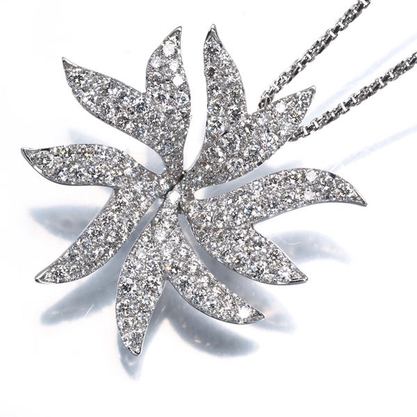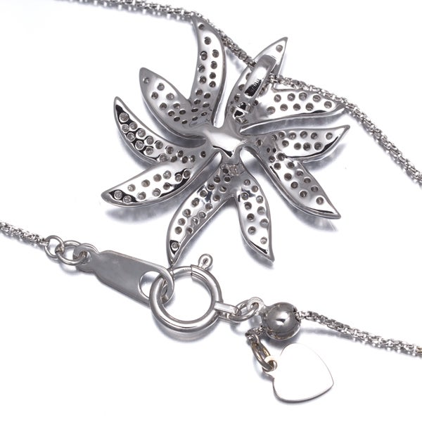 ダイヤ ダイヤモンド 0.76ct フラワー ネックレス K18WG ソーティング【中古】GENJ
