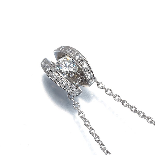 VSクラスアップと思われる素晴らしい透明感を持つダイヤモンドを厳選したネックレス。0.3ctアップの存在感ある一石が印象的で、脇石のメレダイヤも同様に上質なものをセレクトされています。すっきりとした輝きが胸元にさりげない上品さを添えてくれますよ。