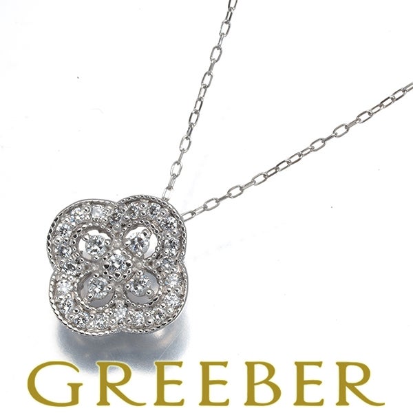 【ポイントアップ対象商品】 ダイヤ ダイヤモンド 0.20ct フラワー ミルグレイン ネックレス Pt900/Pt850 【中古】GENJ