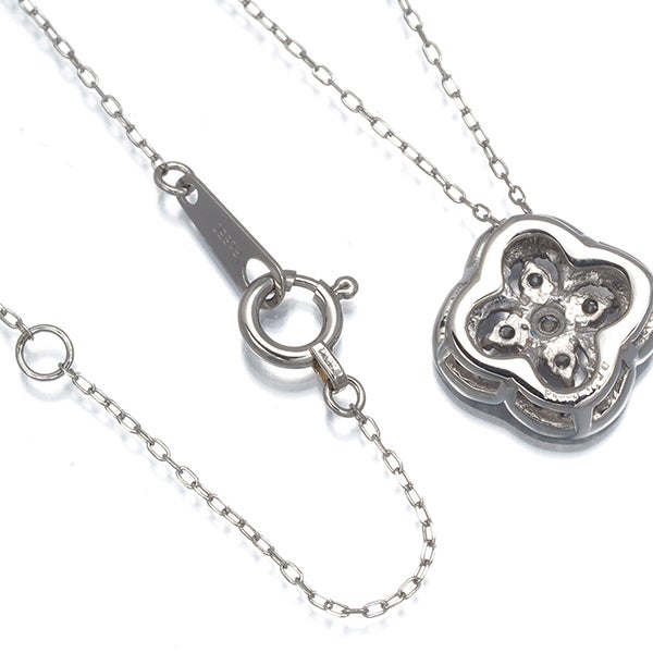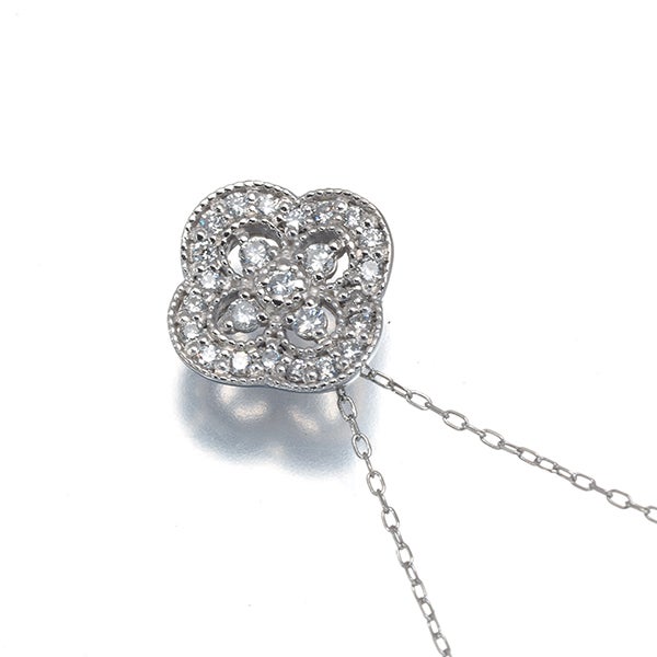 メレダイヤの煌めきとミルグレインを飾ったフラワーデザインネックレス。エレガントなアクセントが胸元を演出してくれますよ。