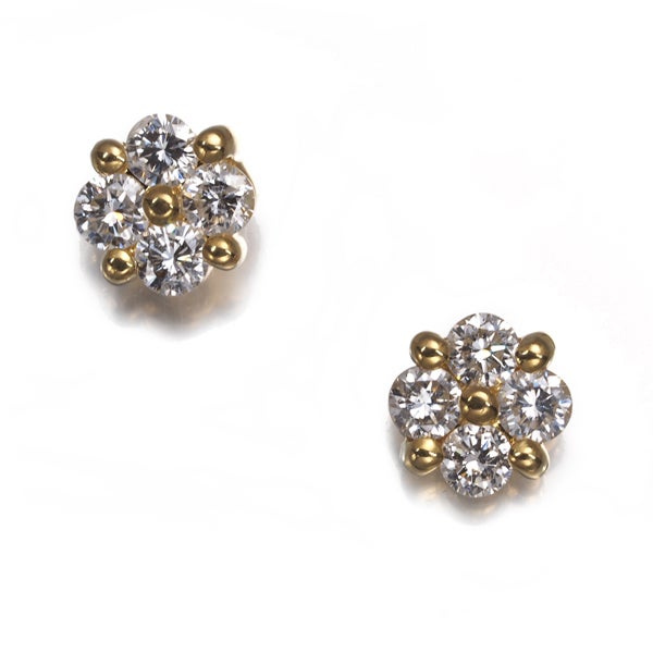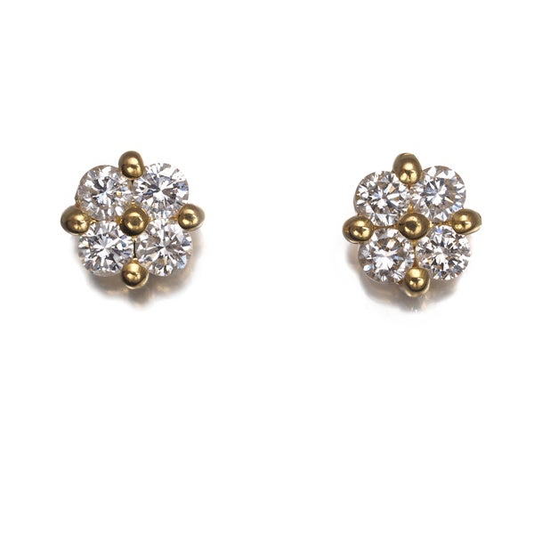 【ポイントアップ対象商品】 ダイヤ ダイヤモンド 0.25ct/0.25ct フラワー ピアス K18YG 【中古】GENJ