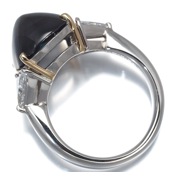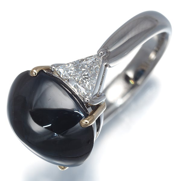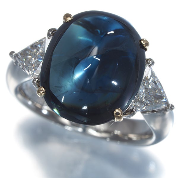 深みのあるブルーの艶やかな輝きと滑らかなフォルムが目を引くサファイアを飾った贅沢な逸品。サイドにはトリリアントカットを施した極上ダイヤモンドの眩い輝きを飾り 優雅なコントラストとともにお手元を印象的に飾ってくれます。