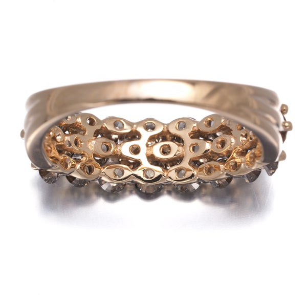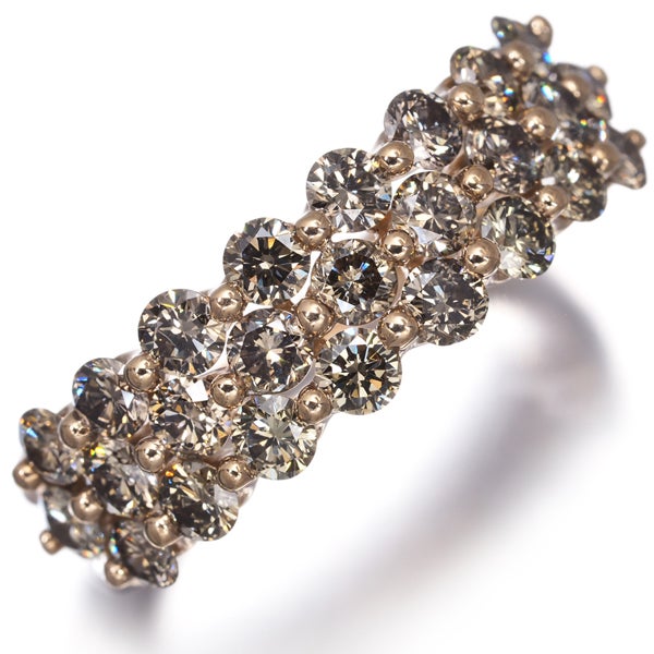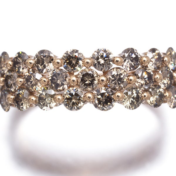上質の透明感と艶やかなテリから眩い虹色の光彩を放つブラウンダイヤならではの魅力をお楽しみいただける贅沢な一品。1石1石に存在感を持たせ 総計1.46ctものボリュームに飾った煌びやかな一品。装いのお手元をエレガントに飾ってくれるダイヤモンドリングです。