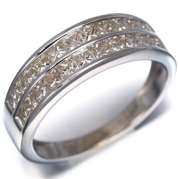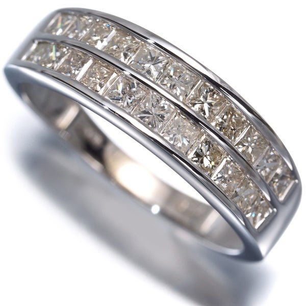 ライトブラウン ダイヤ ダイヤモンド 1.00ct プリンセスカット レールセッティング リング K18WG 【中古】GENJ